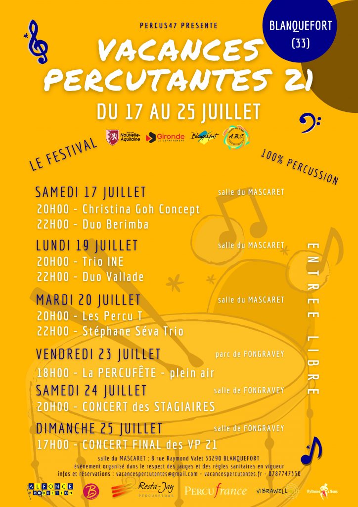 Christina Goh sera en concert en Nouvelle Aquitaine aux « Vacances Percutantes 2021 » de Blanquefort. De la composition à l’interprétation, les Vacances Percutantes permettent une découverte complète de l’univers des percussions.Rendez-vous le samedi 17 juillet 2021 à 20H.Réservations 07 87 74 73 30.En savoir plus.