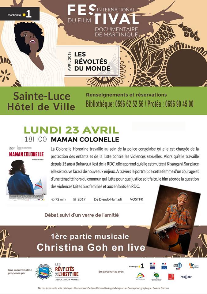 A l’occasion de l’inauguration du « Hors les murs » du Festival International de Documentaire de Martinique, Christina Goh donnera un live thématique avant la diffusion du documentaire « Maman Colonelle » de Dieudonné Hamadi.