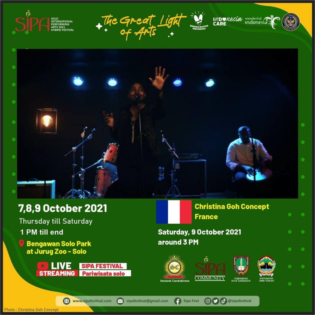 Le Solo International Performing Arts, depuis 2009, rassemble des artistes de la ville de Solo, de plusieurs régions d’Indonésie et du monde entier ; un festival historique, recensé entre autres, dans le Top 30 des événements majeurs d’Indonésie en 2019. Le samedi 9 octobre 2021, à 15H (Indonésie), retrouvez dans cette édition 2021, le concept musical de la vocaliste internationale Christina Goh dans un titre inédit crée spécifiquement sur la thématique du festival « The great light of Arts » (la grande lumière des arts).En savoir plus.